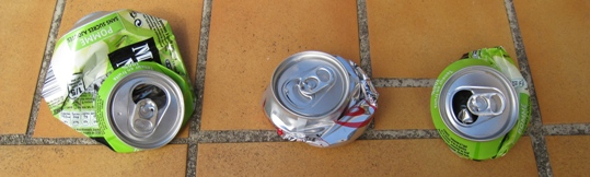 Je rapellerai néanmoins que ceci n'est pas une démonstration, mais bien l'illustration d'un phénomène physique : une instabilité mécanique qui produit le voilement d'une paroi mince et la ruine brutale de l'objet considéré, même après une impulsion très faible, et ce de façon très "propre"... A titre de comparaison, à gauche, une canette écrasée suite à une sollicitation de flexion.
